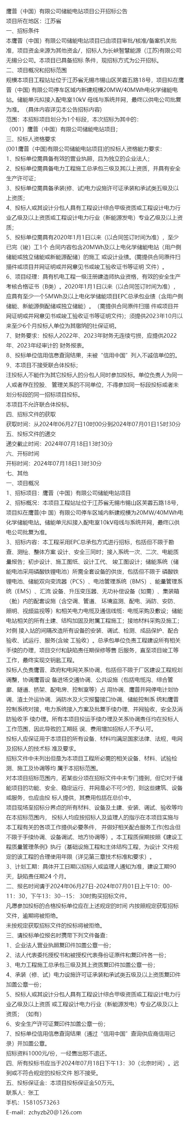 本鷹普(中國)有限公司儲能電站項目已由項目審批/核準/備案機關(guān)批準,項目資金來源為其他資金/,招標人為長峽智慧能源(江蘇)有限公司無錫分公司。本項目已具備招標 條件,現(xiàn)招標方式為公開招標。