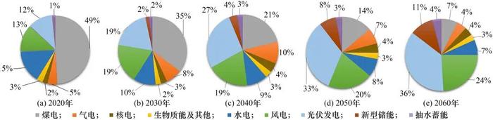圖2 各類型電源裝機(jī)容量(2020—2060年)