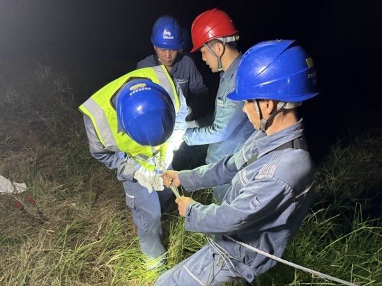故障確認(rèn)后,義圩供電所迅速啟動(dòng)應(yīng)急預(yù)案,組織工作人員進(jìn)行現(xiàn)場(chǎng)勘查并辦理緊急搶修工作票。決定對(duì)10千伏平王線甫必支01開關(guān)后段線路實(shí)施停電,開展緊急搶修。工作人員重點(diǎn)對(duì)斷線處進(jìn)行導(dǎo)線駁接及緊線作業(yè),大家分工明確、密切配合,克服夜間作業(yè)困難,全力以赴推進(jìn)修復(fù)工作。經(jīng)過緊張有序的工作,斷線故障點(diǎn)于17日23時(shí)35分被成功排除,甫必屯、甫好屯于18日0時(shí)30分恢復(fù)供電。