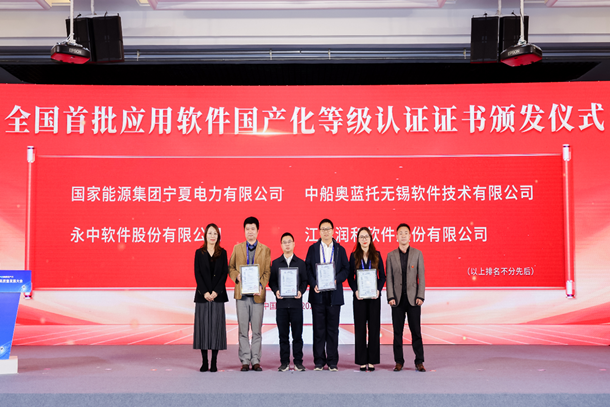 圖為全國首批應(yīng)用軟件國產(chǎn)化等級認(rèn)證證書頒發(fā)現(xiàn)場