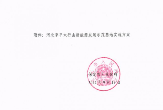 你市報來的《關(guān)于對〈河北阜平太行山新能源發(fā)展示范基地實施方案〉進(jìn)行批復(fù)的函》收悉。經(jīng)研究,函復(fù)如下: