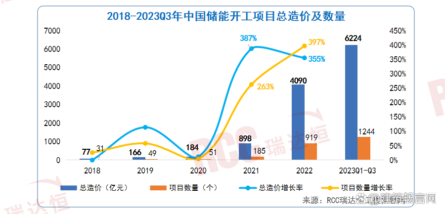 從RCC工程信息網(wǎng)項目數(shù)據(jù)庫中的儲能項目增長數(shù)據(jù)也能看出,2023年的儲能項目明顯增多,僅2023年前三季度的項目數(shù)量就比2022年全年增加了35%,其中大部分為工商業(yè)儲能項目。