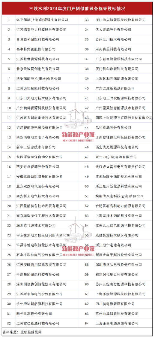 不久前,三峽水利2024年度用戶(hù)側(cè)儲(chǔ)能設(shè)備框架協(xié)議采購(gòu),總共有64家企業(yè)投標(biāo)。