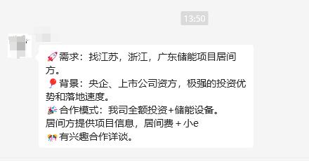 新能源產(chǎn)業(yè)家留意到,在行業(yè)社群里,經(jīng)常有人喊話(huà)尋找項(xiàng)目居間人。