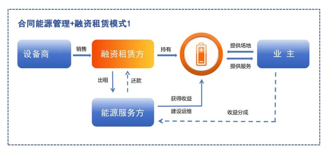 在合同能源管理模式基礎(chǔ)上,引入融資租賃方,向能源服務(wù)方和業(yè)主提供儲(chǔ)能資產(chǎn)出租,以降低能源服務(wù)方和業(yè)主的現(xiàn)金流壓力,同時(shí),能夠發(fā)揮能源服務(wù)方在系統(tǒng)運(yùn)營(yíng)方面的專業(yè)優(yōu)勢(shì),有利于推動(dòng)儲(chǔ)能項(xiàng)目的落地。此模式涉及參與方較多,合同簽訂、財(cái)務(wù)開(kāi)票等流程較為復(fù)雜,且其中子模式演變靈活多樣,未來(lái)隨著資產(chǎn)方對(duì)儲(chǔ)能盈利的信心提升,這種模式有望得到進(jìn)一步推廣。