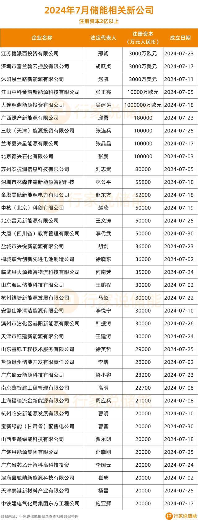 近日,多家儲能相關(guān)新公司及子公司成立。另據(jù)企查查數(shù)據(jù)顯示,2024年1-7月新注冊儲能相關(guān)公司48708家,平均算下來日增近200家。