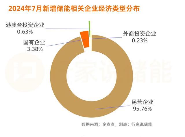 7月新設(shè)儲能相關(guān)企業(yè)中,9成多是民營企業(yè),達(dá)7210家;國有企業(yè)262家,港澳臺獨(dú)資企業(yè)49家,外商投資企業(yè)18家。