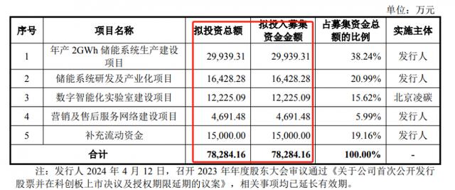 其中29939.31萬元用于年產(chǎn)2GWh儲能系統(tǒng)生產(chǎn)建設(shè)項目,16428.28萬元用于儲能系統(tǒng)研發(fā)及產(chǎn)業(yè)化項目,12225.09萬元用于數(shù)字智能化實驗室建設(shè)項目,4691.48萬元用于營銷及售后服務(wù)網(wǎng)絡(luò)建設(shè)項目,15000萬元用于補充流動資金。