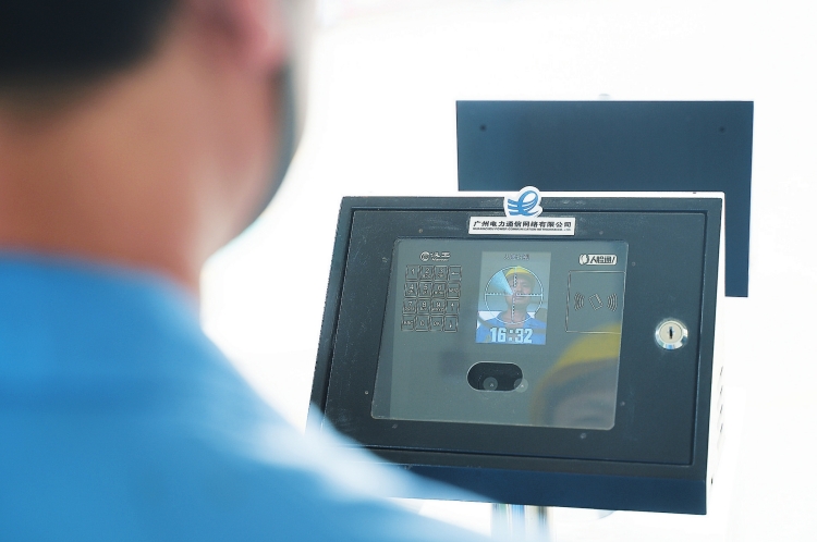 廣州供電局施工人員在“智慧工地”入口通過人臉識(shí)別入場(chǎng)。劉海寧 攝