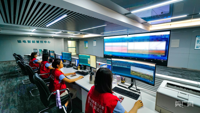 國網(wǎng)天津高壓公司工作人員在輸電管控中心內開展保電監(jiān)測(央廣網(wǎng)記者 褚夫晴 攝)