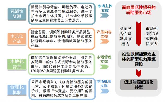 2)探索開發(fā)多元輔助服務(wù)產(chǎn)品。健全備用、調(diào)頻等輔助服務(wù)產(chǎn)品類型,在新能源比例較高的地區(qū),探索建立快速頻率響應(yīng)、快速爬坡等輔助服務(wù)產(chǎn)品。