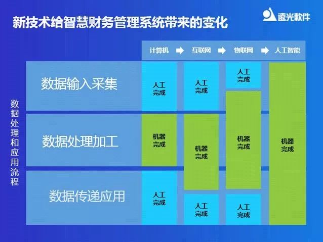 新技術會令智慧財務管理系統(tǒng)帶來哪些變化?陳婷表示改變主要體現(xiàn)在三個階段,即數(shù)據(jù)的輸入采集階段、數(shù)據(jù)的處理加工階段和數(shù)據(jù)的傳遞應用階段。