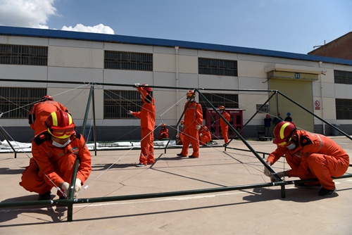 經(jīng)過20多分鐘的應(yīng)急演練,兩座防震帳篷按要求迅速搭建成功,1名受傷人員在緊急醫(yī)療救護后被迅速送往醫(yī)院。隨后,演習(xí)指揮部詳細檢查了防震帳篷搭設(shè)情況,聽取了各搶險隊伍巡檢匯報。