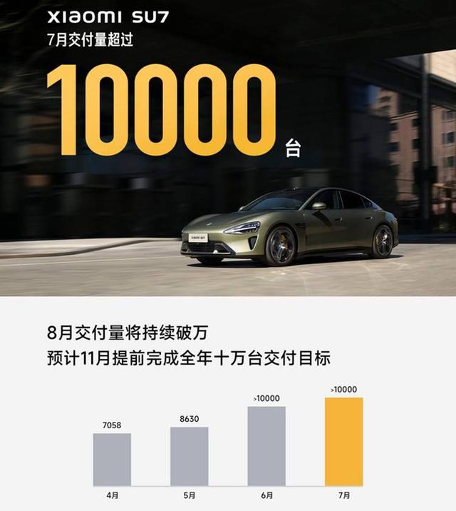 小米7月的交付量超10,000輛,今年累計交付量已經(jīng)超30,000輛。官方預(yù)測,其8月的交付量將持續(xù)破萬,預(yù)計在11月提前完成全年十萬輛的交付目標(biāo)。