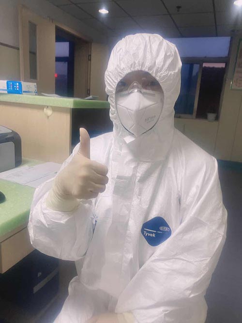 1月28日,負壓病房因人手不夠,在全院范圍緊急招募志愿者。負壓病房,需要“全副武裝”,每天和疑似病人近距離接觸,感染風(fēng)險極大。但受老公經(jīng)常參加搶險救援戰(zhàn)斗的影響,她多次向領(lǐng)導(dǎo)提出申請,并遞交了入黨志愿書,終于獲批“逆行”進入最危險的負壓病房。接下來的20多天,她每天都要陪著10幾個病人,認真細致的檢查防護、登記、測體溫等等,但確診檢測是個比較漫長的過程,有的病人難免產(chǎn)生焦慮、急躁的情緒,她總是像對家人一樣做好撫慰,幫助他們共克時艱。20多天來,她以院為家,克服了各種工作和生活困難,比如在多重防護服下行動不便、呼吸不暢、口干舌燥,累了就倚著墻蹲會,困了就靠著椅背瞇會。總之,就這樣神秘的消失在家人的視線中,有時連報個平安的電話都沒空打。