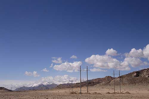 項(xiàng)目身處青海都蘭一望無(wú)際的戈壁灘,氣候干燥,風(fēng)沙肆虐,寒風(fēng)刺骨,自然條件十分惡劣,電話信號(hào)時(shí)有時(shí)無(wú)。春夏相接的五月,沙塵暴和冰雹更是常常輪番“光顧”施工現(xiàn)場(chǎng),給施工進(jìn)度和安全管理帶來(lái)不小的挑戰(zhàn)。對(duì)此,中國(guó)安能第二工程局青海風(fēng)電項(xiàng)目部員工對(duì)工作沒(méi)有絲毫懈怠,大家精誠(chéng)團(tuán)結(jié)、眾志成城,施工生產(chǎn)穩(wěn)步推進(jìn)。此次放線工作于5月28日在5#地塊正式開(kāi)始,該區(qū)段包含146基鐵塔,放線長(zhǎng)度37900米,109.8噸重的導(dǎo)線翻越山巒,在平均海拔3000米的荒漠戈壁攀行30天,最終于五標(biāo)段2-G67號(hào)塔位進(jìn)行交匯。