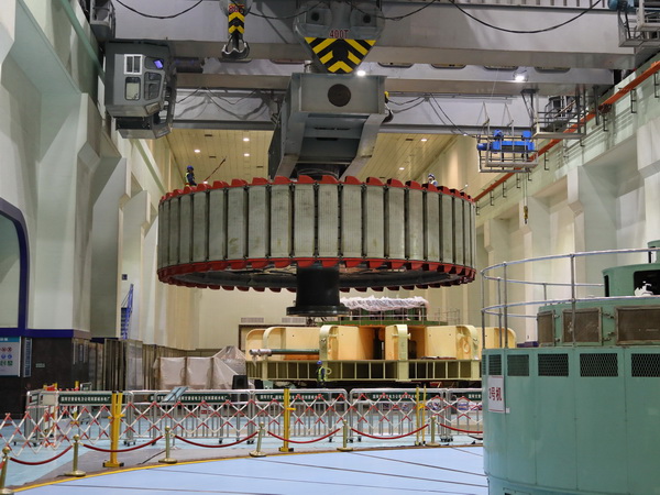 中國(guó)電力網(wǎng)訊 4月29日上午,記者在國(guó)網(wǎng)甘肅劉家峽水電廠廠房?jī)?nèi)看到,在現(xiàn)場(chǎng)起重指揮的哨聲下,該廠700多噸的4號(hào)發(fā)電機(jī)轉(zhuǎn)子,經(jīng)過三起三落的試探性起吊后順利回裝至發(fā)電機(jī)定子中央,標(biāo)志著該廠號(hào)4號(hào)機(jī)組A級(jí)檢修及定子改造工程進(jìn)入了關(guān)鍵階段。