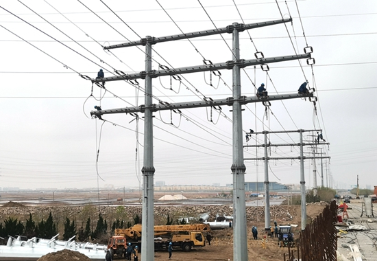中國電力網(wǎng)訊  4月14日,國網(wǎng)壽光市供電公司35名輸電施工人員經(jīng)過3天的緊張施工,完成35千伏營清線涉河遷改任務(wù),拆除35千伏營清線3號、4號四回鋼管桿2基,新立四回鋼管桿2基,電纜下地0.53千米,架設(shè)線路1.12千米,全力保障羊田路彌河大橋工程建設(shè)順利推進(jìn)。