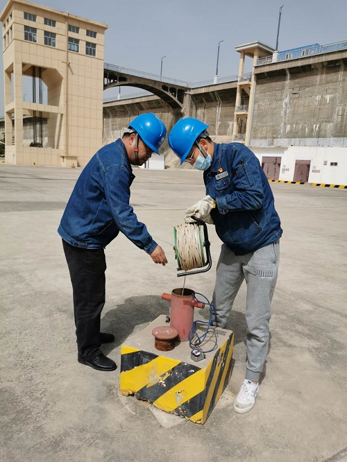 劉家峽水電站大壩的安全直接決定著下游數(shù)百萬民眾的生命財產(chǎn)安全,自該項工程開始施工便同步開展大壩觀測,按照水工安全規(guī)程與觀測規(guī)程要求,進行變形監(jiān)測、滲流觀測和應(yīng)力應(yīng)變觀測,并對觀測數(shù)據(jù)定期整編與統(tǒng)計分析,為大壩定期檢查、鑒定提供依據(jù)。左右岸繞壩滲流水位孔測點分布在山坡上,數(shù)量多且分布范圍分散,因此測量難度非常大,人工測量不僅是體力活也是需要耐心和細心的活。“測鐘”是此次測量的重要設(shè)備,利用測鐘觸碰水面?zhèn)骰貋淼?ldquo;咚”聲音來測量水位,有些地下水位孔深達90m,用測鐘測量已經(jīng)聽不到回聲,測一個深孔就得半個小時,一百多個測點,幾十米的水深,一組“測鐘”加上線重量達十多斤,李亞洲提著“測鐘”行走在左右岸山坡間,每天天亮就上班月亮升起才下班,就這樣連續(xù)工作多天終于完成了所有地下水位孔的測量工作。
