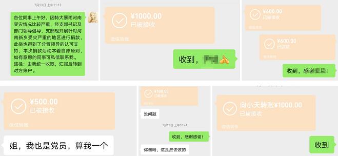 據(jù)悉,河南遭遇特大暴雨,多地發(fā)生嚴(yán)重洪澇災(zāi)害。河南省輝縣市常村鎮(zhèn)氈匠屯村遭受洪澇災(zāi)害,農(nóng)作物受災(zāi),經(jīng)濟(jì)受損,村民們生活與人身安全受到影響。這些天,國網(wǎng)信通產(chǎn)業(yè)集團(tuán)國電通規(guī)劃與計(jì)劃管理業(yè)務(wù)事業(yè)部黨支部黨員們每天都留意新聞報(bào)道,關(guān)注河南災(zāi)情,希望能為河南做點(diǎn)什么。得知輝縣市常村鎮(zhèn)氈匠屯村受災(zāi)情況后,迅速響應(yīng),通過河南籍員工與當(dāng)?shù)攸h組織取得聯(lián)系,發(fā)出捐款倡議。倡議一經(jīng)發(fā)出,便得到了黨支部黨員、發(fā)展對(duì)象和員工的積極參與,迅速募捐到了11800元善款。在輝縣市常村鎮(zhèn)氈匠屯村遭受洪災(zāi)的關(guān)鍵時(shí)刻,迅速將善款打給他們,為當(dāng)?shù)匕傩仗峁┰?/p>