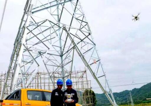 圖為廣東陽江供電局輸電所職工利用無人機(jī)查驗沙扒海上風(fēng)電接入線路。