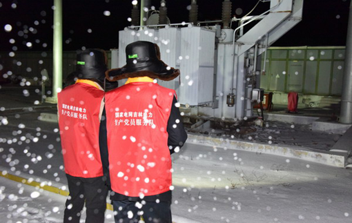 國網長春供電公司員工雪中監(jiān)測變電設備。