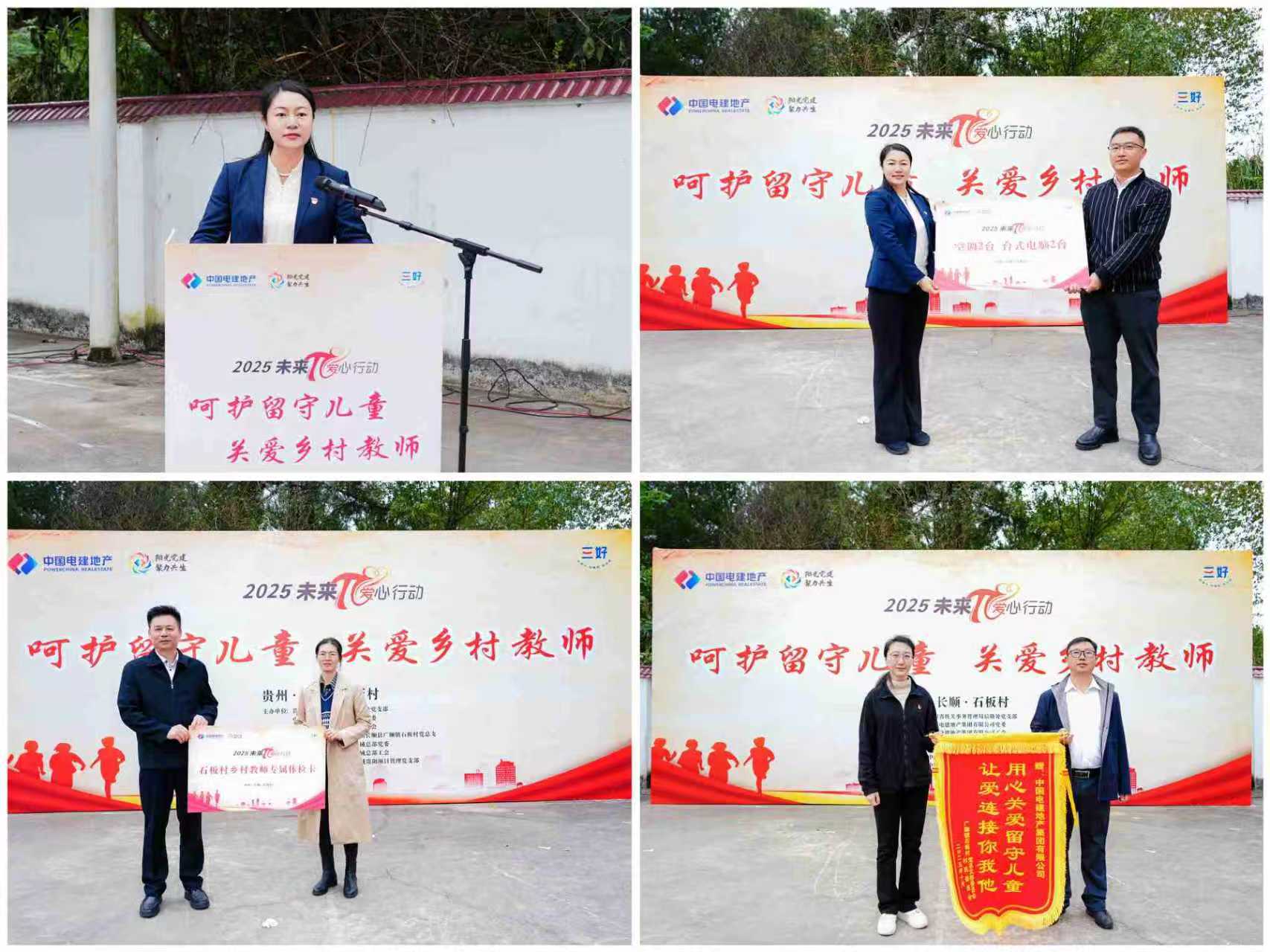 10月22日,中國(guó)電建地產(chǎn)聯(lián)合貴州省機(jī)關(guān)事務(wù)管理局,在貴州黔南布依族苗族自治州長(zhǎng)順縣廣順鎮(zhèn)石板村黨群服務(wù)中心,開展第三次“未來(lái)π”愛(ài)心行動(dòng)。貴州省機(jī)關(guān)事務(wù)管理局黨組成員、副局長(zhǎng)李文華,中國(guó)電建地產(chǎn)黨委副書記、工會(huì)主席武琳等出席活動(dòng),在石板村為師生、鄉(xiāng)親們傳遞溫暖與希望。