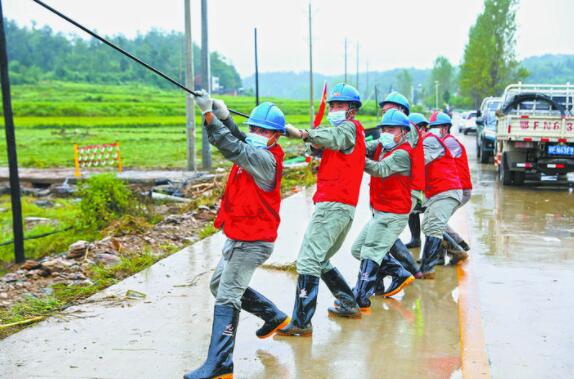 受災(zāi)嚴(yán)重的柳林鎮(zhèn)一度與外部失去聯(lián)系,部分電力桿線被洪水沖毀。國網(wǎng)湖北電力主動停運(yùn)部分供電設(shè)施避險,在洪水退去后迅速搶修,至12日晚已恢復(fù)2座35千伏變電站、3條35千伏線路運(yùn)行和2萬余戶客戶正常供電。該公司還從武漢、孝感、黃岡、天門調(diào)集145人及若干物資支援隨州電網(wǎng)搶修。截至8月15日12時,國網(wǎng)湖北電力累計投入搶修人員5221人次,出動車輛1289臺次,投入應(yīng)急發(fā)電機(jī)65臺、應(yīng)急發(fā)電車6臺、發(fā)電照明裝置57臺、大型搶修設(shè)備21臺。