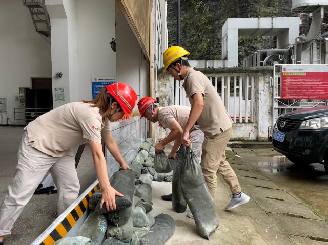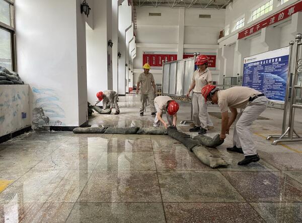 9月16日17時(shí),公司開啟三孔閘門進(jìn)行泄洪,按照公司防汛總值班室命令和Ⅱ級(jí)橙色預(yù)警防洪預(yù)案要求,公司全員團(tuán)結(jié)協(xié)作、井然有序進(jìn)行防洪搶險(xiǎn)工作。首先恢復(fù)各大門防洪擋板,用沙袋封堵廠房大門,其次檢查泄洪兩側(cè)山體、道路交通情況,并拉設(shè)警戒線嚴(yán)禁大壩通行,同時(shí)對(duì)廠房外側(cè)墻體孔洞進(jìn)行巡查,嚴(yán)防有水滲入。晚上19時(shí),因泄洪對(duì)廠房玻璃造成損壞,公司采取臨時(shí)緊急措施用木板進(jìn)行封堵,并用沙袋進(jìn)行引水隔離,避免積水流入的發(fā)電機(jī)層導(dǎo)致設(shè)備短路而引起重大設(shè)備事故。