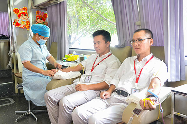 圖為該公司員工踴躍參加無償獻(xiàn)血