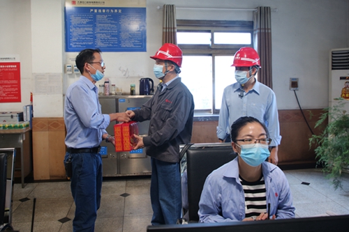 該公司黨委委員、副總經(jīng)理、工會(huì)負(fù)責(zé)人雷小平一行先后來(lái)到燃運(yùn)運(yùn)行集控室、環(huán)保運(yùn)行集控室、職工食堂、發(fā)電運(yùn)行集控室以及控制、燃管、檢修等部門(mén),為生產(chǎn)一線(xiàn)人員、后勤人員送去飲料、涼茶等慰問(wèn)品。在各生產(chǎn)部門(mén)運(yùn)行集控室,雷小平與生產(chǎn)一線(xiàn)人員握手交談,詢(xún)問(wèn)了燃煤接卸、機(jī)組上煤、運(yùn)行調(diào)整及人員值班等情況,對(duì)生產(chǎn)一線(xiàn)人員堅(jiān)守在迎峰度夏第一線(xiàn)戰(zhàn)高溫、斗酷暑、保發(fā)電的奉獻(xiàn)精神表示肯定。他鼓勵(lì)各部門(mén)人員鼓足干勁,齊心協(xié)力做好迎峰度夏各項(xiàng)工作,助力企業(yè)切實(shí)履行好保電保民生的社會(huì)責(zé)任:燃運(yùn)人員要直面當(dāng)前四臺(tái)機(jī)組大負(fù)荷運(yùn)行燃煤頂格消耗的壓力,做好來(lái)煤集中接卸以及機(jī)組上煤工作;集控、環(huán)保運(yùn)行人員要把迎峰度夏各項(xiàng)安全發(fā)電措施做好做實(shí)做到位,確保四臺(tái)機(jī)組大負(fù)荷時(shí)期安全、環(huán)保發(fā)電;檢修人員要加強(qiáng)值班及時(shí)消除設(shè)備缺陷,確保不因設(shè)備問(wèn)題影響機(jī)組帶負(fù)荷。在職工食堂,雷小平對(duì)后勤人員在當(dāng)前疫情形勢(shì)下采取工作餐打包方式,竭盡全力滿(mǎn)足廣大員工早中晚就餐需求所付出的辛苦與努力表示感謝。他還叮囑大家做好防疫及防暑雙重措施,確保人員安全,全力維護(hù)企業(yè)安全穩(wěn)定的良好局面。