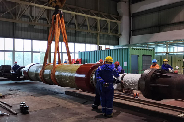 下午14時(shí)10分,隨著起重指揮人員的一聲哨響,發(fā)電機(jī)抽轉(zhuǎn)子工作正式開(kāi)始,抽出期間,各專業(yè)人員分工有序,密切配合,時(shí)刻注意轉(zhuǎn)子與定子的間隙,及時(shí)調(diào)整轉(zhuǎn)子的移出量和中心位置,每一步都做到精益求精。整個(gè)抽出過(guò)程中,公司副總經(jīng)理張旭耀攜各部門負(fù)責(zé)人、專工現(xiàn)場(chǎng)監(jiān)督、指導(dǎo),隨時(shí)協(xié)調(diào)工作中可能出現(xiàn)的問(wèn)題,為抽轉(zhuǎn)子作業(yè)的順利進(jìn)行,提供了可靠保障。