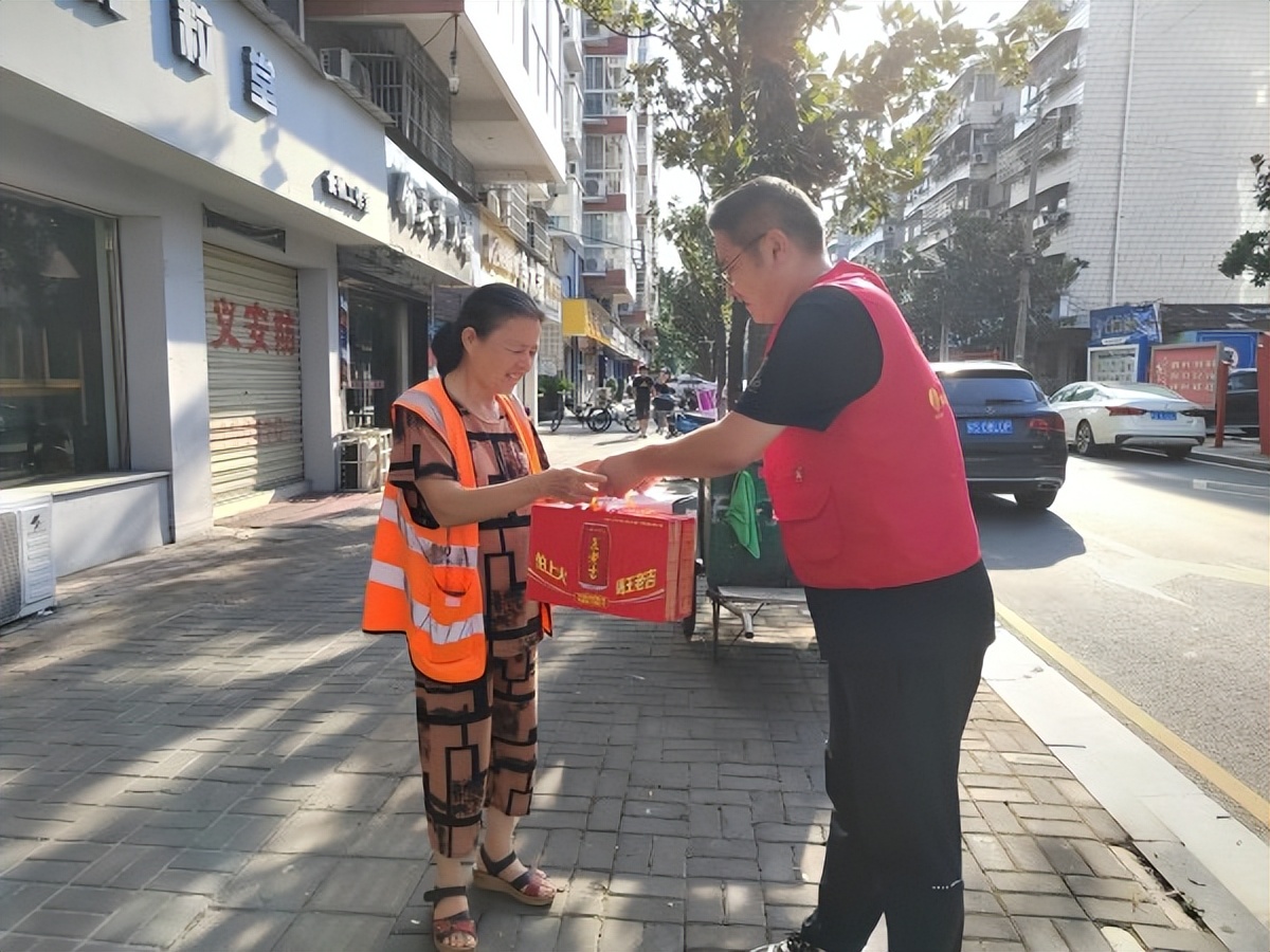 活動中,志愿者們首先對他們不畏高溫天氣,仍然堅守崗位工作、默默付出致以誠摯的敬意和感謝。隨后,將牛奶、涼茶、礦泉水等慰問物資送到一線環(huán)衛(wèi)工作人員手中,同時囑咐大家要提高自保互保意識,做好防暑降溫措施,確保勞逸結(jié)合、身體康健。此次活動,讓堅守在烈日與高溫下的環(huán)衛(wèi)工人們感受到夏日的絲絲清涼。