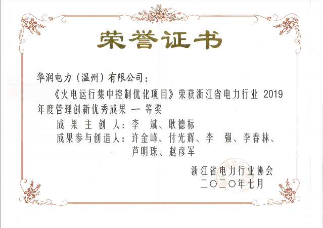 中國(guó)電力網(wǎng)訊 近日,由浙江省電力行業(yè)協(xié)會(huì)主辦的2019年度管理創(chuàng)新優(yōu)秀成果評(píng)審結(jié)果揭曉,華潤(rùn)溫州電廠《火電運(yùn)行集中控制優(yōu)化項(xiàng)目》從200余項(xiàng)創(chuàng)新成果中脫穎而出,榮膺一等獎(jiǎng)。