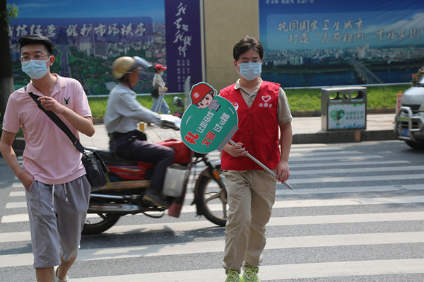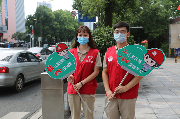 “不亂穿馬路,不翻越交通護(hù)欄。”“文明開車,不得車窗拋物。”“紅燈停、綠燈行,黃燈亮了等一等!”“禮讓斑馬線,文明過馬路。”志愿者們對(duì)過往行人不文明行為及時(shí)進(jìn)行勸導(dǎo),為株洲文明城市建設(shè)貢獻(xiàn)力量。