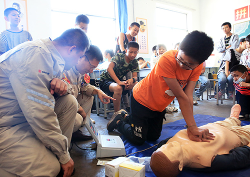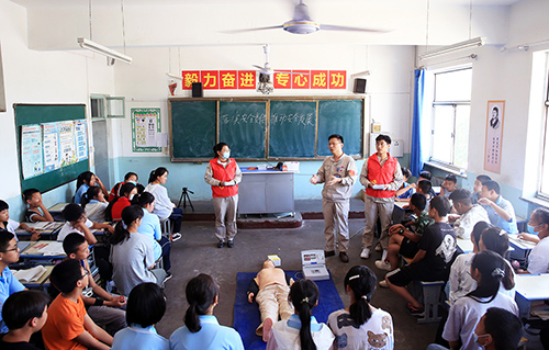 中國電力網(wǎng)訊 “青春心向黨、奮進(jìn)新征程”。2021年6月是全國第20個(gè)安全生產(chǎn)宣教月,按照國務(wù)院安委辦關(guān)于安全咨詢“進(jìn)企業(yè)、進(jìn)農(nóng)村、進(jìn)社區(qū)、進(jìn)學(xué)校、進(jìn)家庭”五進(jìn)活動要求,為了更好地把安全理念傳遞給企業(yè)周邊學(xué)校學(xué)生,6月18日下午,大唐臨汾熱電公司組織青年志愿者走進(jìn)汾河學(xué)校“大唐班”開展主題團(tuán)日活動,看望七年級、八年級“大唐班”學(xué)子,進(jìn)行安全宣傳咨詢和心肺復(fù)蘇急救指導(dǎo),提升孩子們的自我防護(hù)意識及自救能力。