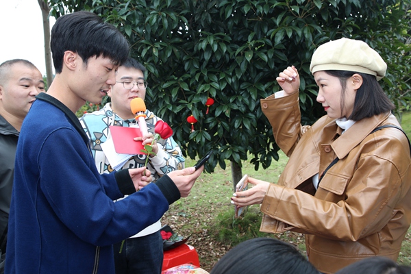 青年聯(lián)誼活動在熱情洋溢的氛圍中拉開了序幕?;顒觾?nèi)容包括自我介紹、才藝展示、有獎?chuàng)尨?、現(xiàn)場分組、游戲環(huán)節(jié)和玫瑰結緣牽手等。幾輪有獎競答,預熱了活動現(xiàn)場。隨后,各單位隊長開始挑選隊員,進行分組,分成了紅、藍、橙、紫4組。在主持人的帶動下,每組以競賽的方式完成“你演我猜”和“雙龍戲珠”等一系列豐富多彩的游戲環(huán)節(jié),青年男女之間進行了一次次的互動交流和團隊協(xié)作,緩解了初次見面的緊張羞澀,也讓大家在歡聲笑語中,拉近距離、加深了解,將現(xiàn)場氣氛推向了一個又一個高潮。