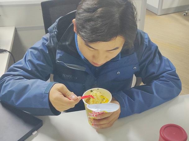 “最大的困難還是吃飯,大年三十晚上我們還能點(diǎn)到外賣,從初一開始就沒有店鋪營(yíng)業(yè)了,泡面就是我們的工作餐?!蓖踝雍栏袊@道。