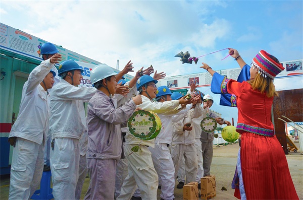 “粽情粽意,端午迎祥,堅守崗位,履職盡責(zé)……”這是中國能建安徽電建二公司防城港項目部張富班早班會上高喊口號的情景。端午前夕,身穿壯族服飾的小姑娘黃發(fā)娟將粽子串起并拋出,班組成員爭相伸手接。只見,20余名施工人員拿著粽子,剝著鴨蛋,有說有笑。端午未至,可濃濃的粽香已彌漫整個核電現(xiàn)場……