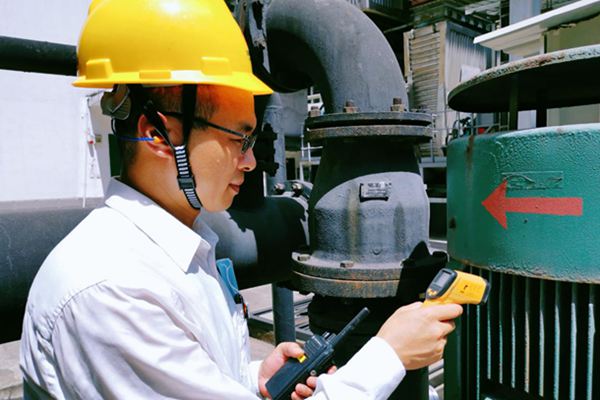 只見運行人員嚴格落實設備點檢標準化程序,認真做好設備的巡查工作,一手拿著測溫儀測設備電機的溫度,一手拿著對講機匯報測溫參數,大滴的汗水順著臉頰滴落,但是絲毫影響不了他們對工作的熱情。