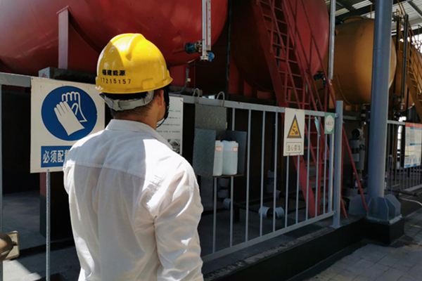 “報告主值,化水區(qū)域設備運行正常,1號酸罐液位1.6米,2號酸罐液位…… ”化學巡檢人員正拿著對講機匯報巡檢情況,我們可以從鏡頭上看到,高溫的洗禮下整件衣服都已經貼著后背,滿臉大汗就不在話下。