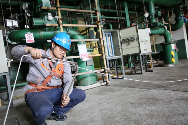 熱機三班胡雙志正在接2號機壓縮空氣管