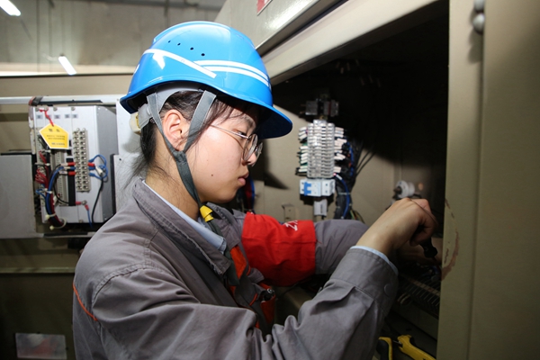 電控班吳皓正在2號機6kV室對更換后的B排粉機開關(guān)二次插板進(jìn)行接線