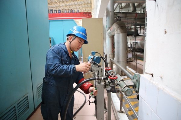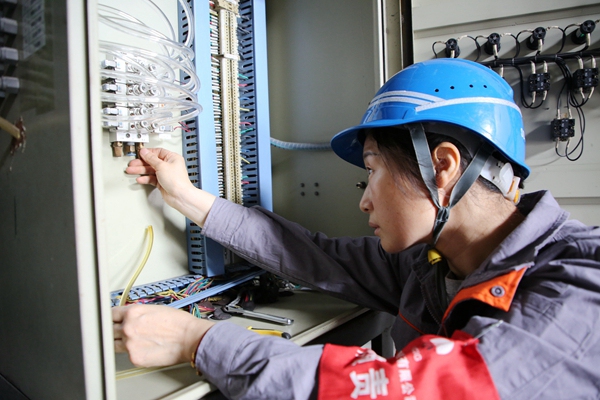 熱控三班彭郴梅正在進(jìn)行2號機精處理就地?zé)峥卦O(shè)備檢修