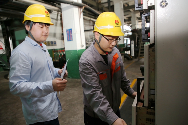 防磨防爆檢查組成員汪亮正在低過進(jìn)行防磨防爆檢查