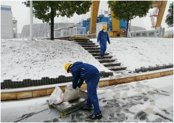 早在幾天前,一收到市氣象局發(fā)布的大雪預(yù)警信息后,楊坤就帶領(lǐng)著六值班組成員進(jìn)行相關(guān)重點(diǎn)區(qū)域的學(xué)習(xí)和操作。工作開(kāi)始前,楊坤再三叮囑值內(nèi)成員要采取好防護(hù)保暖措施,預(yù)防風(fēng)寒感冒。大雪襲來(lái)后,楊坤第一時(shí)間帶領(lǐng)值內(nèi)成員在部門統(tǒng)籌安排下,前往生產(chǎn)現(xiàn)場(chǎng)清雪、撒鹽、鋪設(shè)防滑袋等相關(guān)安全保障措施。風(fēng)雪中,楊坤拿來(lái)了幾個(gè)大鐵鍬,在鍋爐12米的給煤機(jī)平臺(tái)上將凍上的冰面一片片敲裂,然后再順著雪一道鏟到通道的兩旁,最后撒上鹽,在相關(guān)區(qū)域鋪上麻袋。有人問(wèn)他怎么做得這么熟練,他笑著說(shuō)自己打小在東北的家鄉(xiāng)就干這些事。