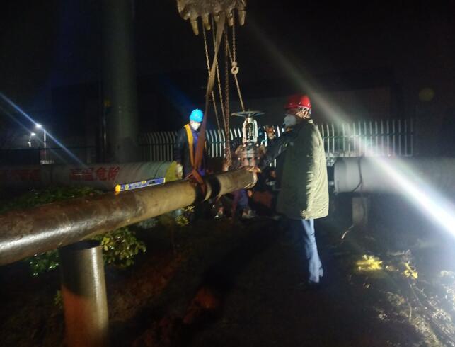 “方區(qū)長(zhǎng)要求務(wù)必連夜搶修,確保盡快投產(chǎn)!現(xiàn)在這個(gè)非常時(shí)期,雙匯食品復(fù)產(chǎn)是重要的民生工程......”“不管風(fēng)雪多大,保證完成任務(wù)!”向當(dāng)?shù)卣畢R報(bào)得到反饋后,華電蕪湖公司迅速成立“攻堅(jiān)隊(duì)”,按照一級(jí)搶險(xiǎn)任務(wù)實(shí)施進(jìn)行:確定“改道引管供汽”方案、編制《廠(chǎng)外供熱至雙匯地埋管道消缺方案及安全技術(shù)措施》、組織施工人員及物料到位,連夜施工連夜開(kāi)工,并由總工、副總工親自現(xiàn)場(chǎng)督陣,全力以赴推進(jìn)供暖缺陷搶修任務(wù)。