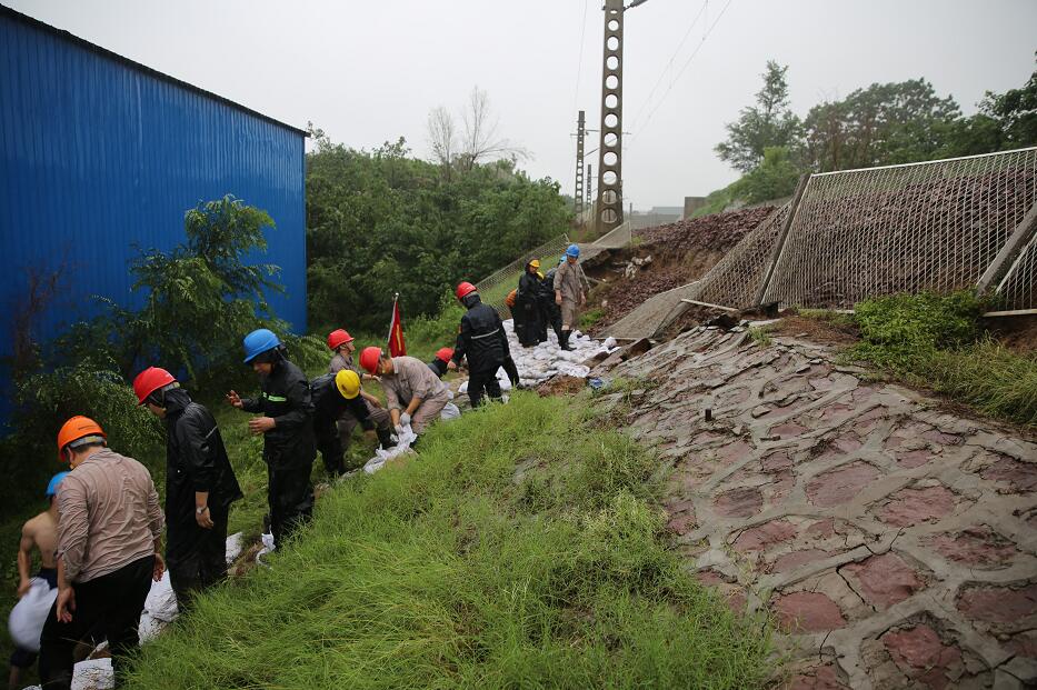 “鐵路專(zhuān)用線路場(chǎng)外區(qū)域索河鐵路大橋北段西側(cè)600米處護(hù)坡出現(xiàn)部分坍塌,我已撤到安全區(qū)域!”20日11時(shí)20分,巡線人員向指揮部報(bào)告。如果鐵路出了問(wèn)題將無(wú)法運(yùn)煤,沒(méi)有煤機(jī)組只能停運(yùn),指揮部的人員聽(tīng)到這個(gè)消息都出了一身冷汗。2臺(tái)轉(zhuǎn)載機(jī)1臺(tái)運(yùn)輸卡車(chē)立即到位,80余名黨員突擊隊(duì)員冒著大雨迅速來(lái)到塌方處,用石子、沙土等加固鐵路護(hù)坡,防止險(xiǎn)情繼續(xù)擴(kuò)大。