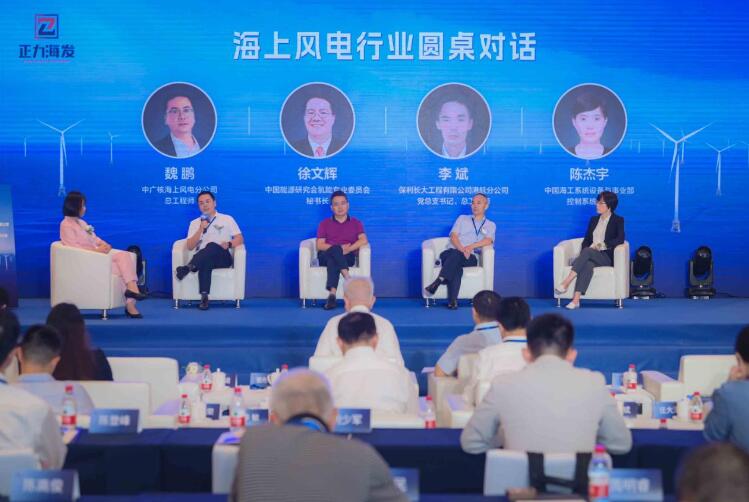 主旨演講后,由正力海發(fā)公司總裁高玲總主持,中廣核工程公司海上風(fēng)電公司總工程師魏鵬、國能源研究會(huì)氫能專業(yè)委員會(huì)秘書長徐文輝、中保利長大工程有限公司港航分公司黨總支書記、總工程師李斌、中國海工系統(tǒng)設(shè)備與事業(yè)部控制系統(tǒng)專家陳杰宇4位嘉賓的圓桌對(duì)話,圍繞中國海風(fēng)拓展國際市場(chǎng)的機(jī)遇和挑戰(zhàn)、海上風(fēng)電制氫技術(shù)發(fā)展及未來展望、深水風(fēng)電支腿船如何助力浮式風(fēng)機(jī)建設(shè)、海工裝備國產(chǎn)化的思考四個(gè)方面進(jìn)行深入探討,四位嘉賓專業(yè)見解和經(jīng)驗(yàn),展現(xiàn)了海風(fēng)市場(chǎng)、海上風(fēng)電、海工建設(shè)、海工裝備在未來的發(fā)展中具有廣闊的前景和未來,海洋能源、海洋工程大有可為。