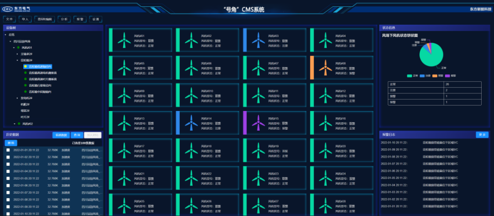“號(hào)角”CMS系統(tǒng)是東方新能科技與東方研究院聯(lián)合攻關(guān),基于萬余臺(tái)風(fēng)電機(jī)組的運(yùn)行數(shù)據(jù)和運(yùn)維經(jīng)驗(yàn),針對(duì)風(fēng)電機(jī)組狀態(tài)監(jiān)測系統(tǒng)開發(fā)。該系統(tǒng)集成了數(shù)據(jù)管理、智能診斷、多維度統(tǒng)計(jì)預(yù)警、機(jī)器學(xué)習(xí)、專家服務(wù)等先進(jìn)算法和手段,具有硬件通用化、數(shù)據(jù)開放化、分析標(biāo)準(zhǔn)化等特點(diǎn),能夠與風(fēng)電機(jī)組主控系統(tǒng)直接通訊,實(shí)現(xiàn)實(shí)時(shí)監(jiān)測、自動(dòng)診斷和保護(hù)停機(jī)等功能。“號(hào)角”CMS系統(tǒng)與“哨塔”輕量化預(yù)警平臺(tái)、“新能智維”信息化系統(tǒng)一起,構(gòu)成東方新能科技智慧運(yùn)維體系。